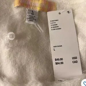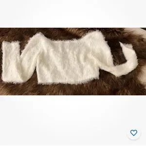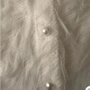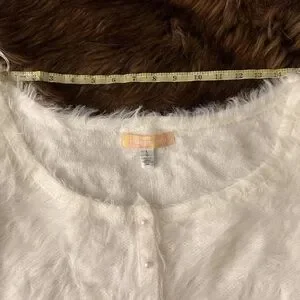 New with tags white fuzzy Robin cardigan with pearl like buttons with shanks. Size is large. Very cropped and shows shoulders. Looks cute over a cute sundress with some heavy boots.