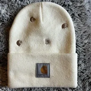 Stylish cream beanie with Carhartt logo. Perfect for cold weather.