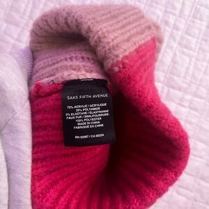 Stylish knit beanie featuring a pink design. Topped with a fluffy pom pom—from Saks Fifth Avenue