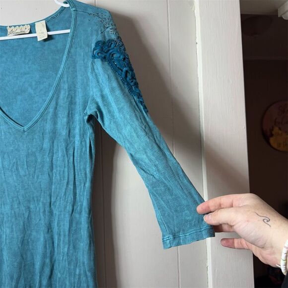 Gimmicks by BKE Blue Crochet Sleeve V-Neck Y2K long sleeve shirt M