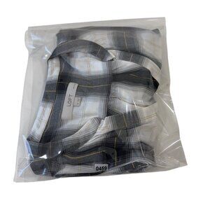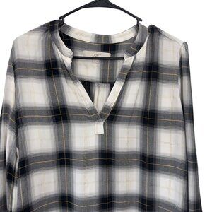 Loft Petite Plaid Tunic Blouse Long Sleeve Black White Gold Details Womens Sz LP