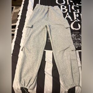 Comfortable gray cargo sweatpants with multiple pockets. Perfect for casual wear.