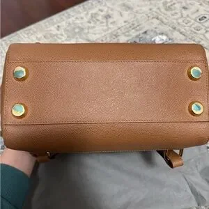 Experience the exquisite craftsmanship that is Senreve. This midi Maestra in pebble chestnut with gold detail, combines style, and functionality seamlessly. There are several interior pockets and zippers to accommodate everything from cell phones and keys to make up and tablets. You can wear this bag, Crossbody, as a backpack, or over a shoulder. I have many purses from Senreve and have loved them all! Truly a classic and timeless brand. Original dust bag included.