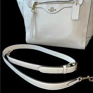 This large Authentic Coach “Kleo” satchel carryall is in a smooth pebble leather; in a gorgeous “chalk” shade. (C5690) The condition is as close to new as you will ever find. Used only a rare few times for special occasions. Please see pictures… the excellent condition is evident.