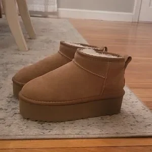Platform boots, mini boots, fur boots, fur ugg boots, brown fur boots
