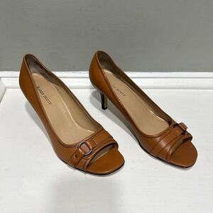 Karen Scott Open Toe Brown Women’s Mid-Heel Dress Shoe -size 9