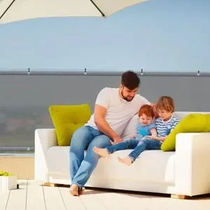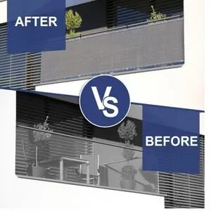 Enhance your balcony with this gray privacy screen. Perfect for adding a touch of elegance and privacy.