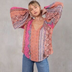 SOLD LOVESTITCH Hippie At Heart Volume Sleeve Blouse Size Small Pink Boho Top