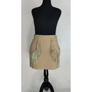 Rock & Roll Fringe Mini Skirt Tan Size 32