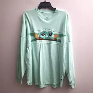 Star Wars Mandalorian Spirit Jersey Medium Green Disney Resort Long Sleeve Grogu