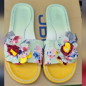 Step into style with these vibrant floral women's sandals. Featuring a multicolor design, these sandals are perfect for adding a pop of color to any outfit.