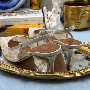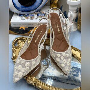 🆕 KURT GEIGER LONDON 🧿 NWOB Belgravia Floral Mesh Sling Back Heel, Cream Sz 7