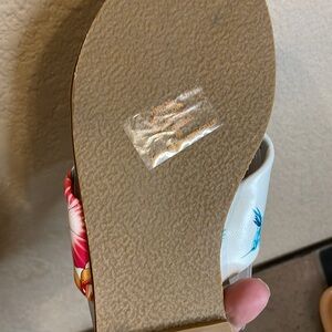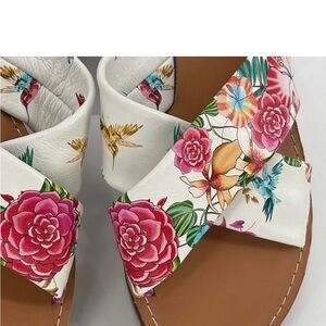 NEW Johnny Was Andra Cross Leather Floral Print Slip On Flat Sandals Sz 8M