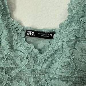 Elegant light green lace bralette by Zara. Features delicate lace detailing and thin straps.