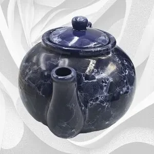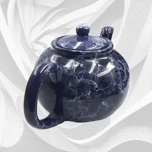 Enhance your tea time with this elegant blue marble teapot. Its unique design adds a touch of sophistication to any setting.