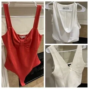 Three medium tops — 2 cropped (Zara & Banana Republic) & 1 bodysuit (Dillards)