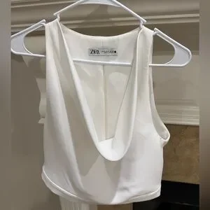2️⃣ Zara cowl neck cropped blouse with zipper in back