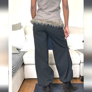 COP COPINE Black Wide leg Pant Hem Pleated Dress Pants