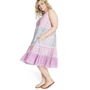 sleeveless tiered midi dress with dainty floral prints
