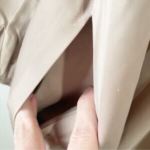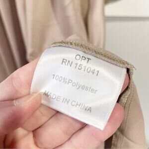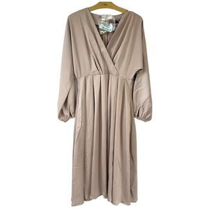 OPT Women Medium Taupe Silky MIDI Dress Low Cut Belted Champange