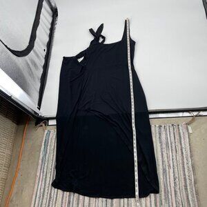 Aritzia Wilfred Black Square Neck Ruched Wrap Tie Dress Womens Size Large Tencel