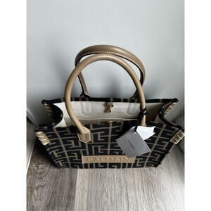 BALMAIN Khaki & Black B-Army 36 Monogram Jacquard Tote $1495