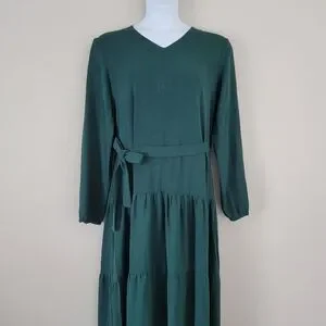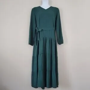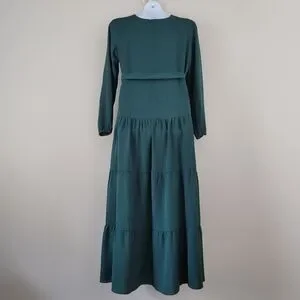 LOVE OLIVE CO 'Walsh' Dress Green Boho Lagenlook Tiered Long Sleeve Maxi NWT