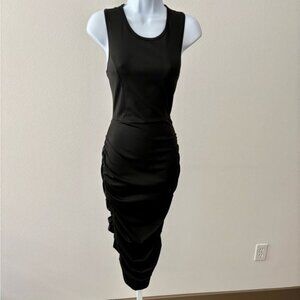Ruched Dress Small Black Open Back BodyCon Festival Urban Streetwear Minimalist
