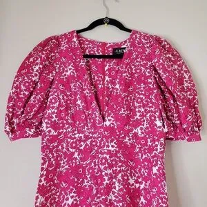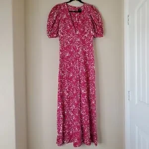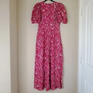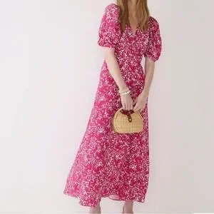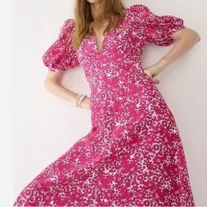 J. Crew Collection Puff Sleeve V Neck Maxi Dress Drapey Floral Pink Sz 8 Easter