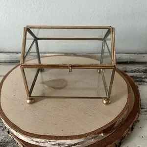 Elegant gold glass display box perfect for showcasing your treasures. Adds a touch of sophistication to any room.