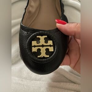 TORY BURCH 'Allie' Black Leather Ballet Flats