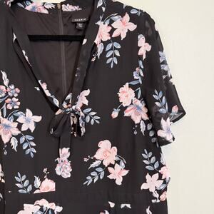 Torrid Floral Skater Dress Womens 22 Plus Black Floral Boho Sheer Sleeve Chiffon