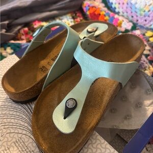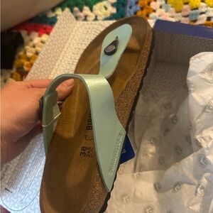 Comfortable Birkenstock thong sandals in a “Graceful Matcha” color. Ideal for everyday wear. Never worn, tags still on, brand new. Spring cleaning! I’m just trying to get rid of them nothing wrong with them!