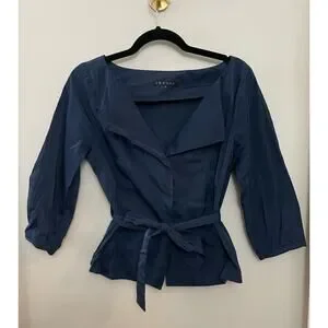 Theory Capsule Elegant Modern Minimalist Classic Tie Waist Navy Top or Jacker M