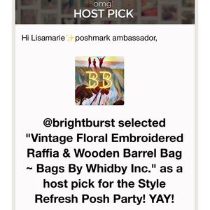 What a surprise @brightburst ! Thank you sooo much for choosing this fantastic bag as your "STYLE REFRESH” POSH PARTY 💕 Host Pick!! I truly appreciate your showcasing it … especially vintage!❣️🎉 ❣️🎉🎉 Thanks also @beloved_one @poppyspretties for taking the time to leave a congratulatory comment... sharing a few of all of your items in appreciation 🌻🌻 😘😘