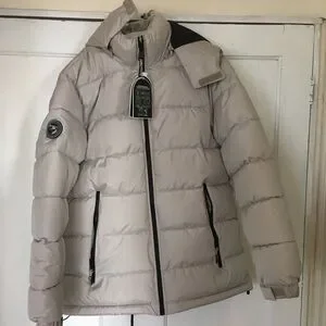 Polar Vortex Super Triple Goose Exploration Jacket by Canada Weather Gear, XL, gray. Quilted design and goose down filling. The high collar and removable hood provide added protection against the cold.