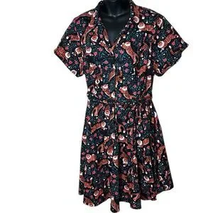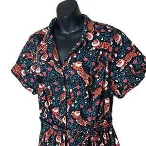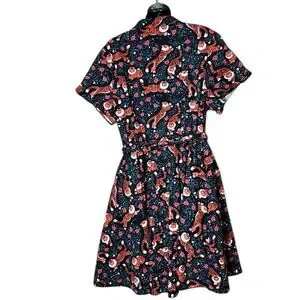 Eva rose vintage 1950s style floral tiger button up belted fit flare dress 3x