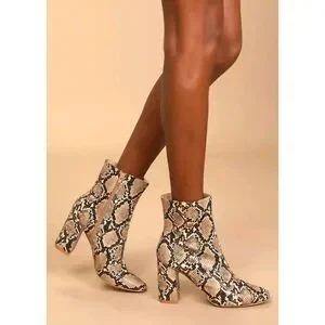 Lulus my generation Snake Reptile block heel women sz 7.5 Boots Bootie Ankle Tan