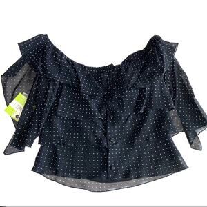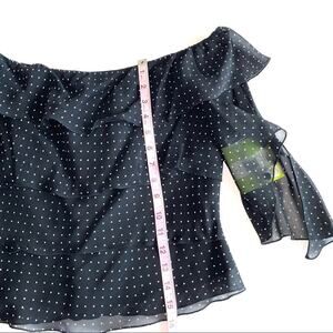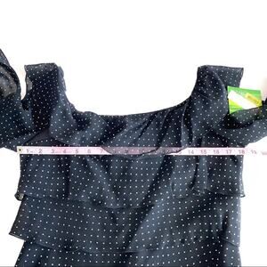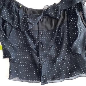 NWT Citrine Black Micro Polka Dot Tiered Ruffle Boatneck Blouse Size 12