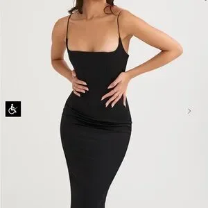 House of CB Anais Black Satin Pointed Corset Midi Dress