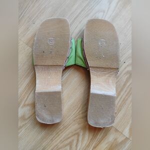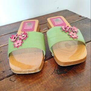 Lilly Pullitzer Vintage Green Leather Wooden Sandals Mules Floral Italy Size 10