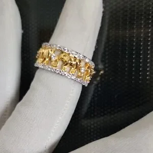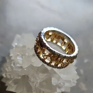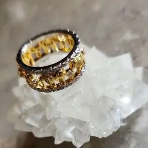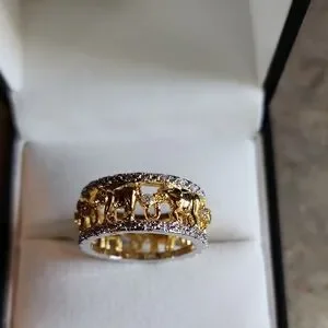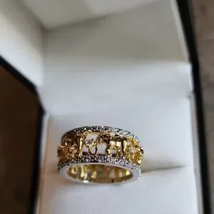 Add excitement to your jewelry collection with this intriguing elephant ring! Known as a symbol of strength, honor, stability, and patience, this two-tone elephant ring makes an adorable gift for yourself or loved ones. It features elephants in eternal circular succession across the silver band of this hand crafted sterling silver ring, smaller pavé-set stones sparkle along the edges of the style, completing this charming look.
