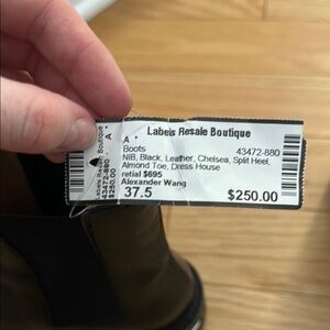These Alexander Wang ankle booties showcase a sophisticated black leather finish, complete with elastic side panels for effortless wear. The low heel offers a comfortable lift, making them ideal for versatile styling.