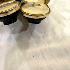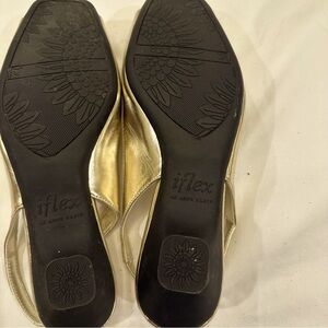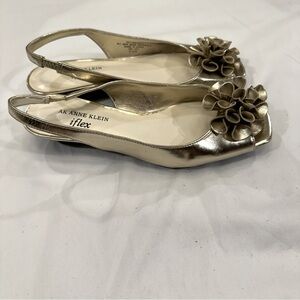 AK Anne Klien Iflex Metallic Gold OpenToe Slingback Flats FlowerToe Shoes Sz 6.5