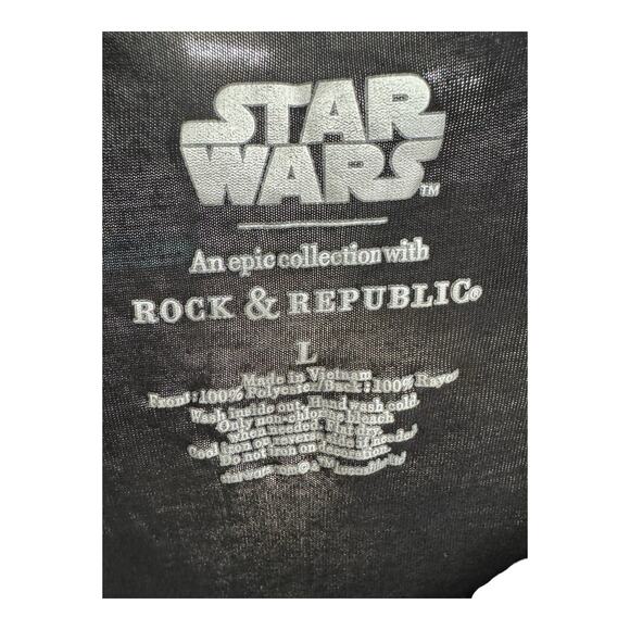 Explore the galaxy in comfort with the Star Wars x Rock & Republic Glow in the Dark Blue Hi-Lo Tank Top. Designed for the ultimate fan, this women's large tank features a dynamic graphic print that includes iconic characters such as Darth Vader and Luke Skywalker. The round neck and racerback design provide a relaxed fit perfect for casual outings. The tank's unique blend of black, blue, gray, and white hues is complemented by subtle glitter accents and a glow-in-the-dark feature, making it a standout piece for any collection. Crafted from a lightweight polyester and rayon fabric, it's suitable for all seasons, especially summer, fall, and spring. For longevity, hand wash care is recommended.