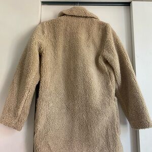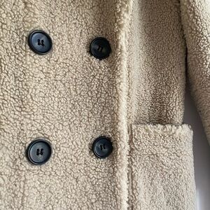 Stay cozy and stylish with this tan sherpa coat. Perfect for chilly days.