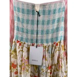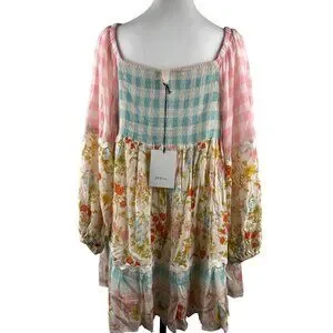 SPELL Women's Tunic Dress Pastel Floral Smocking Long Sleeve 233113N Size L