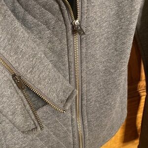 Athleta Belvedere gray quilted zip up Moto Jacket zipper sleeves Women’s Sz S