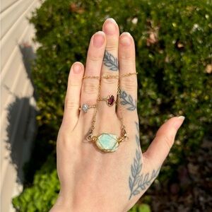 Handmade by me in stainless steel gold plated interchangeable chain. YOU choose chain length is not choice it will be 18”