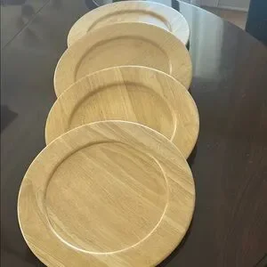 Four FURIO Natural Wood Chargers